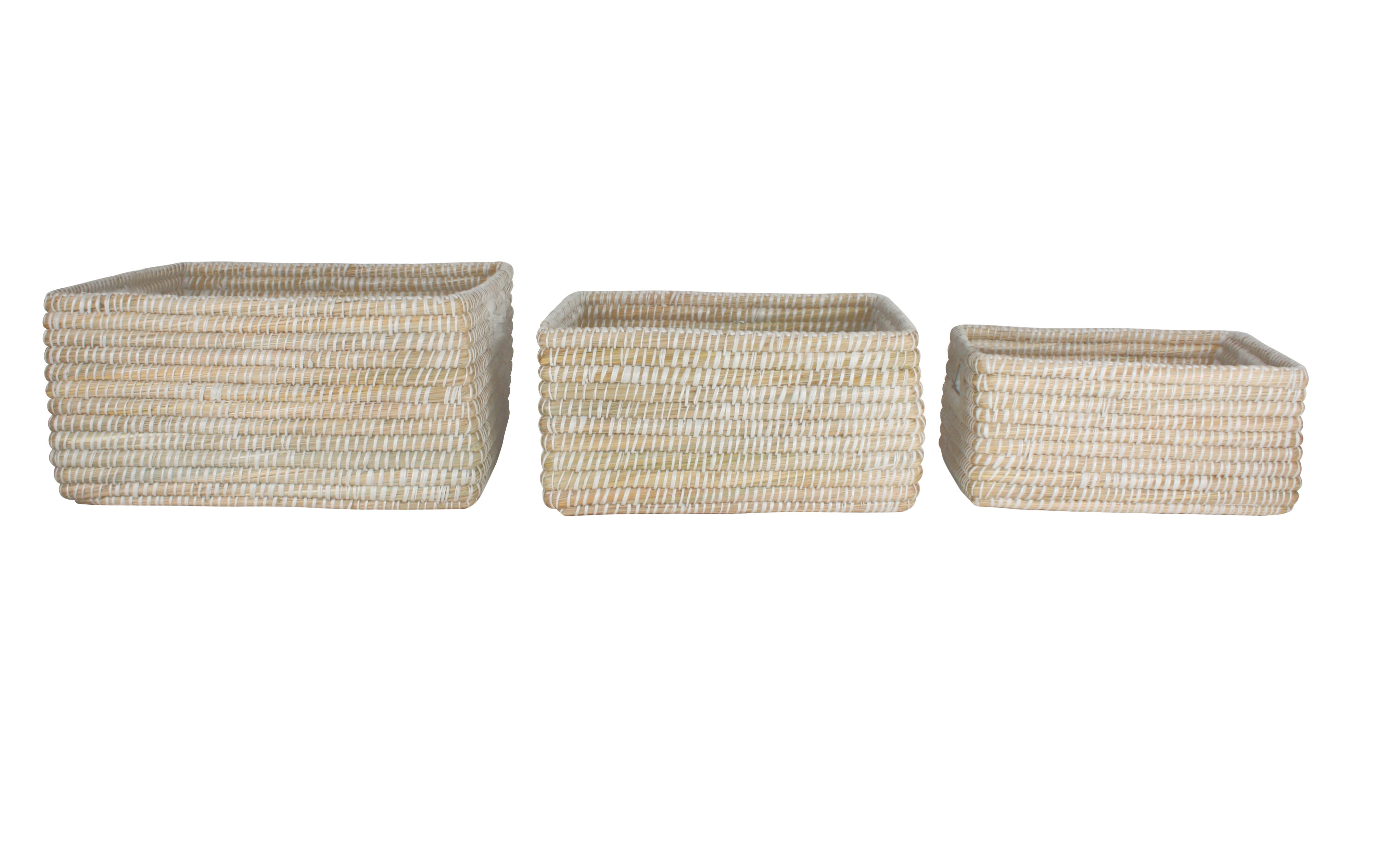 Introducing Kans Grass Baskets, a set of 3 stackable storage solutions made from durable Kans Grass. With the largest basket measuring 45 x 35 x 24cm, these baskets offer ample space to declutter and organise any room. Say goodbye to clutter and hello to stylish storage with Kans Grass Baskets.