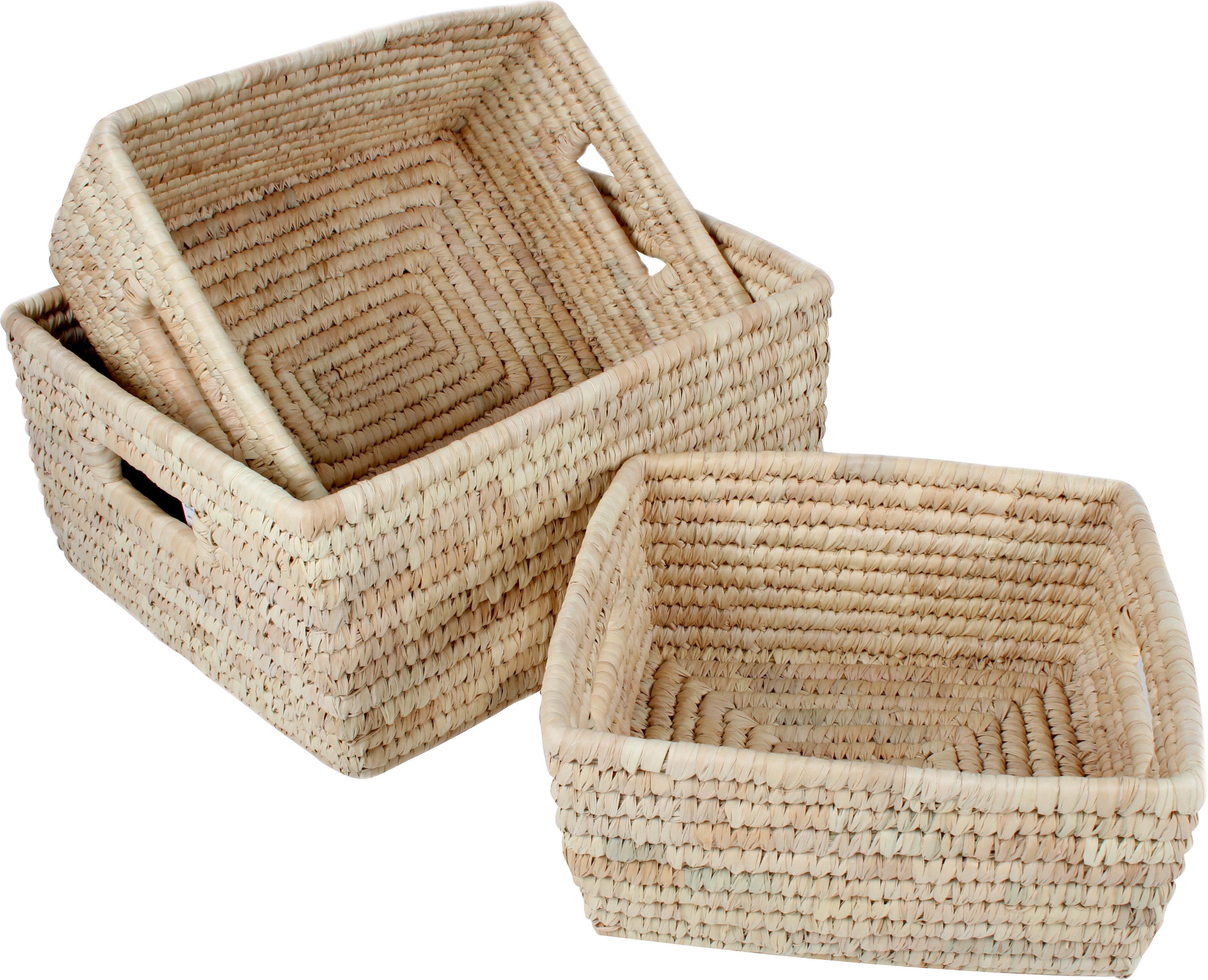 Add a touch of nature to your living space with these exquisite Erin Set of 3 Rectangle Baskets. Each basket is meticulously handwoven from sustainable seagrass and date leaf, giving it a unique texture and earthy appeal. with their durable construction and timeless design, these baskets are sure to become an essential part of your daily life.