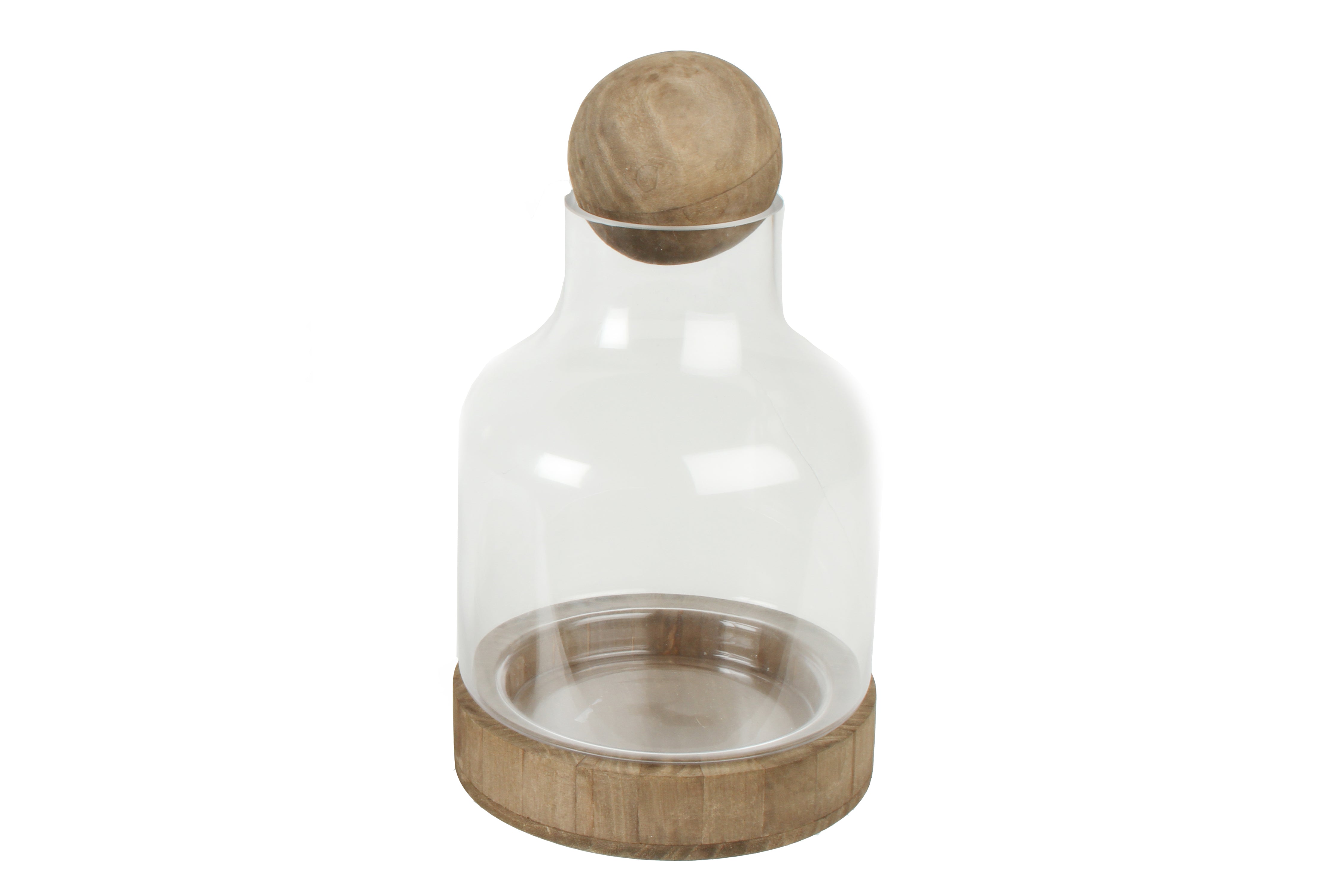 This forest terrarium with ball lid and base is made with durable glass and high-quality dark wood....