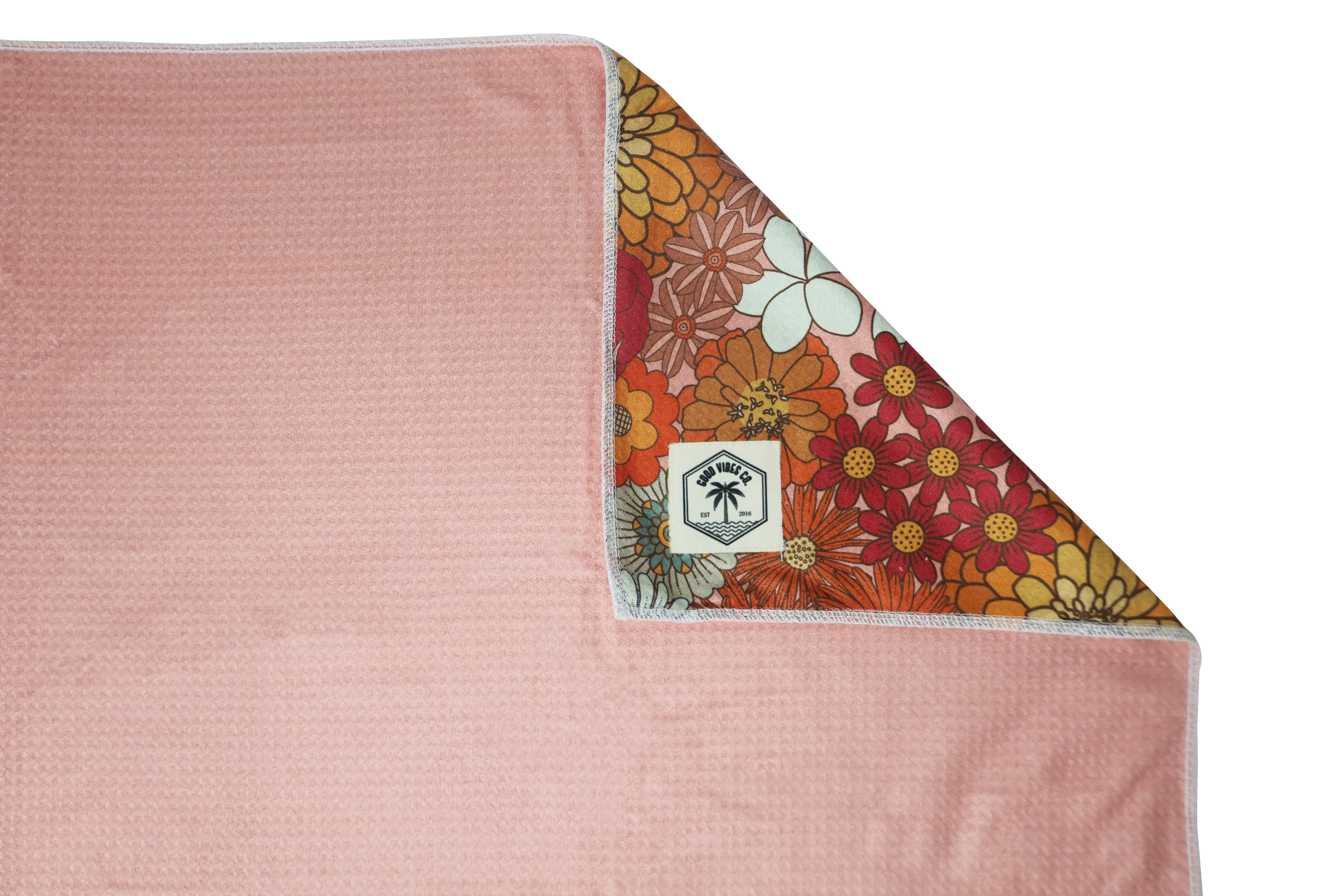 Good Vibes™ 160cm Premium Waffle Beach Towel with Storage Bag, Double Sided, Eco Friendly, Sand Free, Quick Dry, Ultra Absorbent - Retro Summer