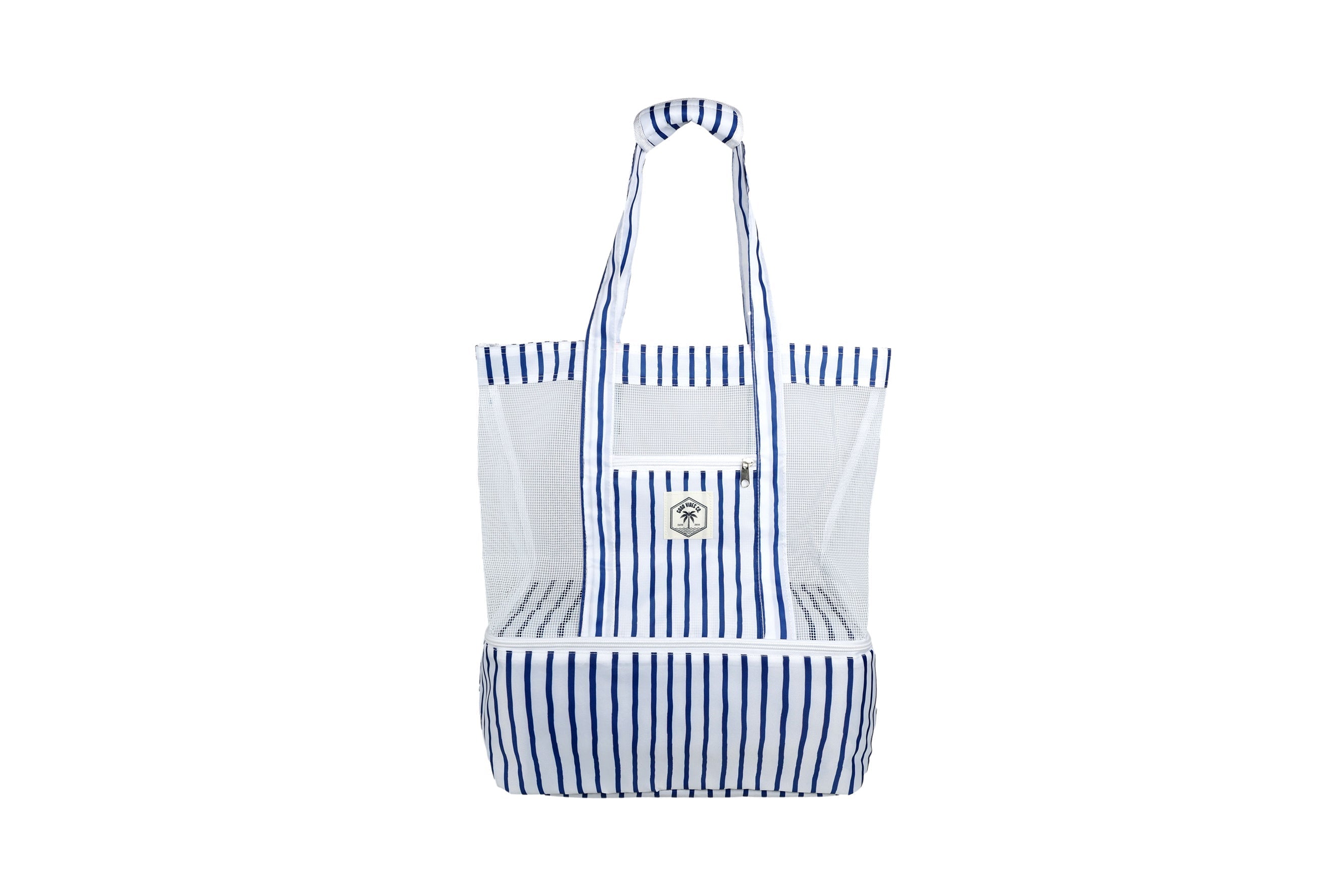 Good Vibes™ 2 in 1 Insulated Beach Cooler Bag, 2 Compartments, Mesh Top, Zipped Pocket - Mediterranean