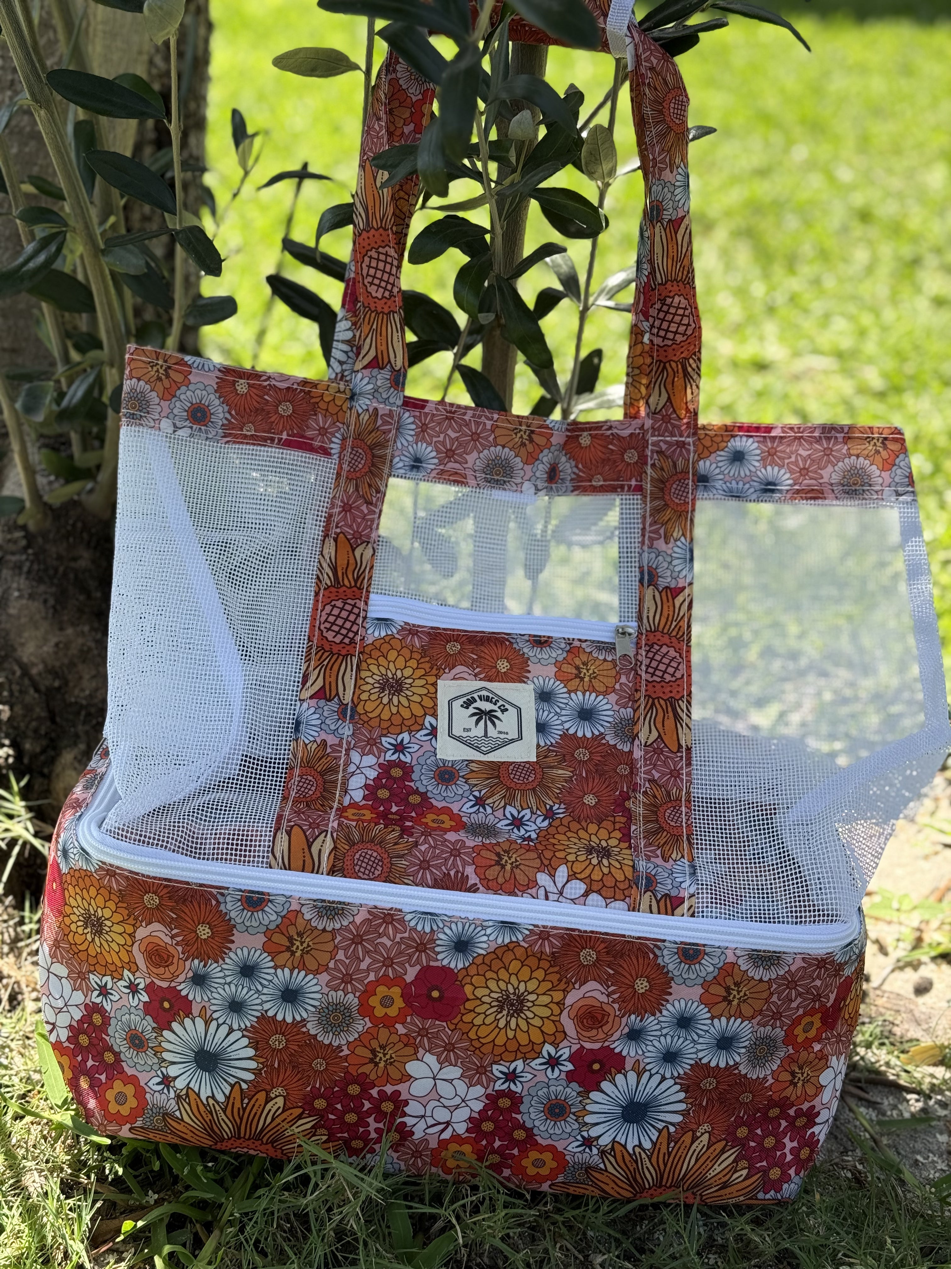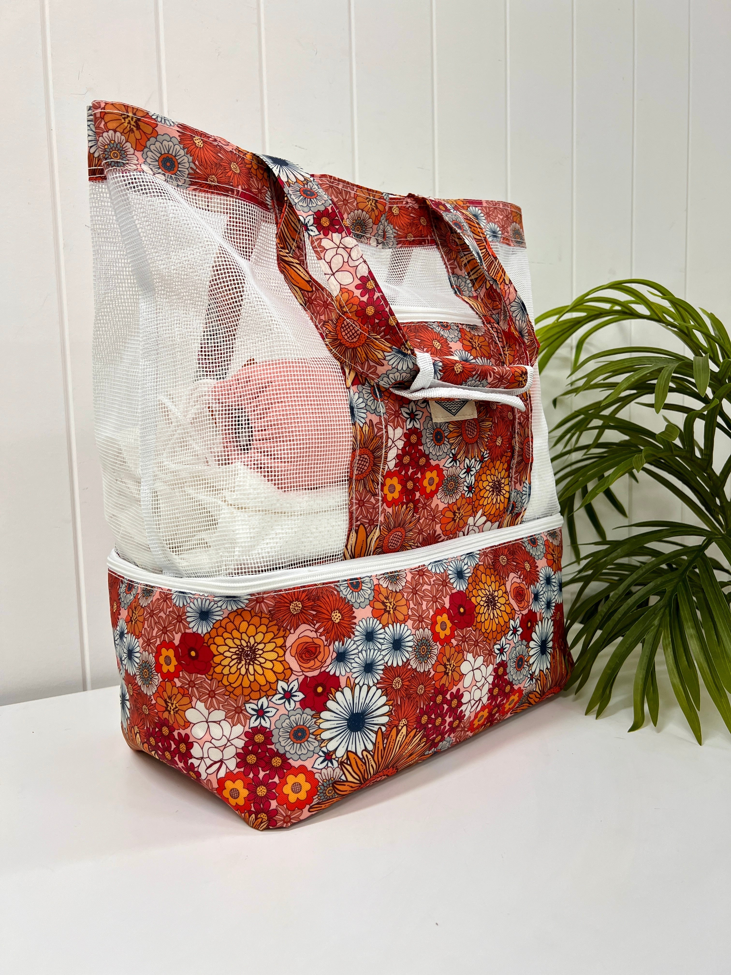 Good Vibes™ 2 in 1 Insulated Beach Cooler Bag, 2 Compartments, Mesh Top, Zipped Pocket - Retro Summer