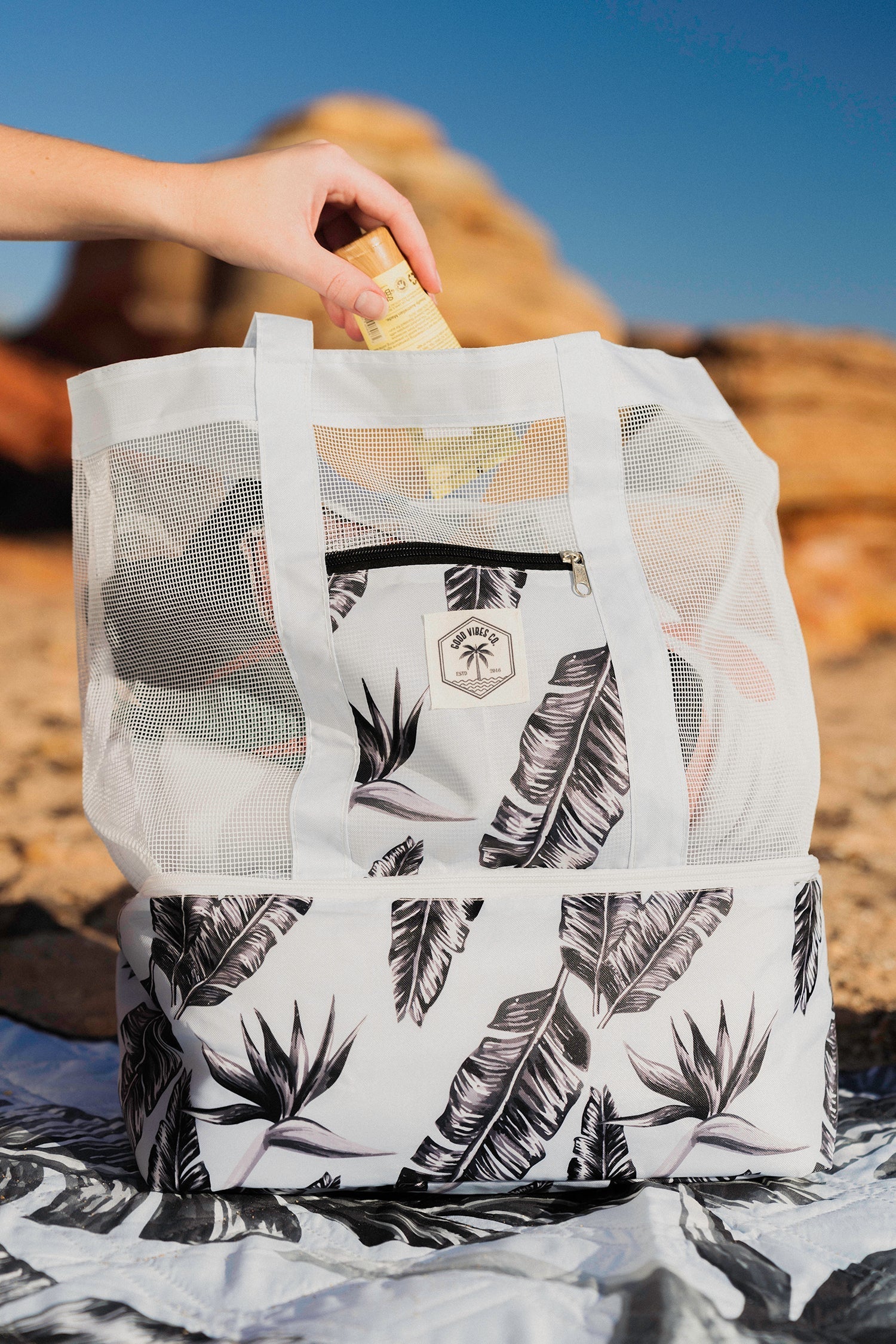 Good Vibes™ 2 in 1 Insulated Beach Cooler Bag, 2 Compartments, Mesh Top, Zipped Pocket - Sorrento Palm