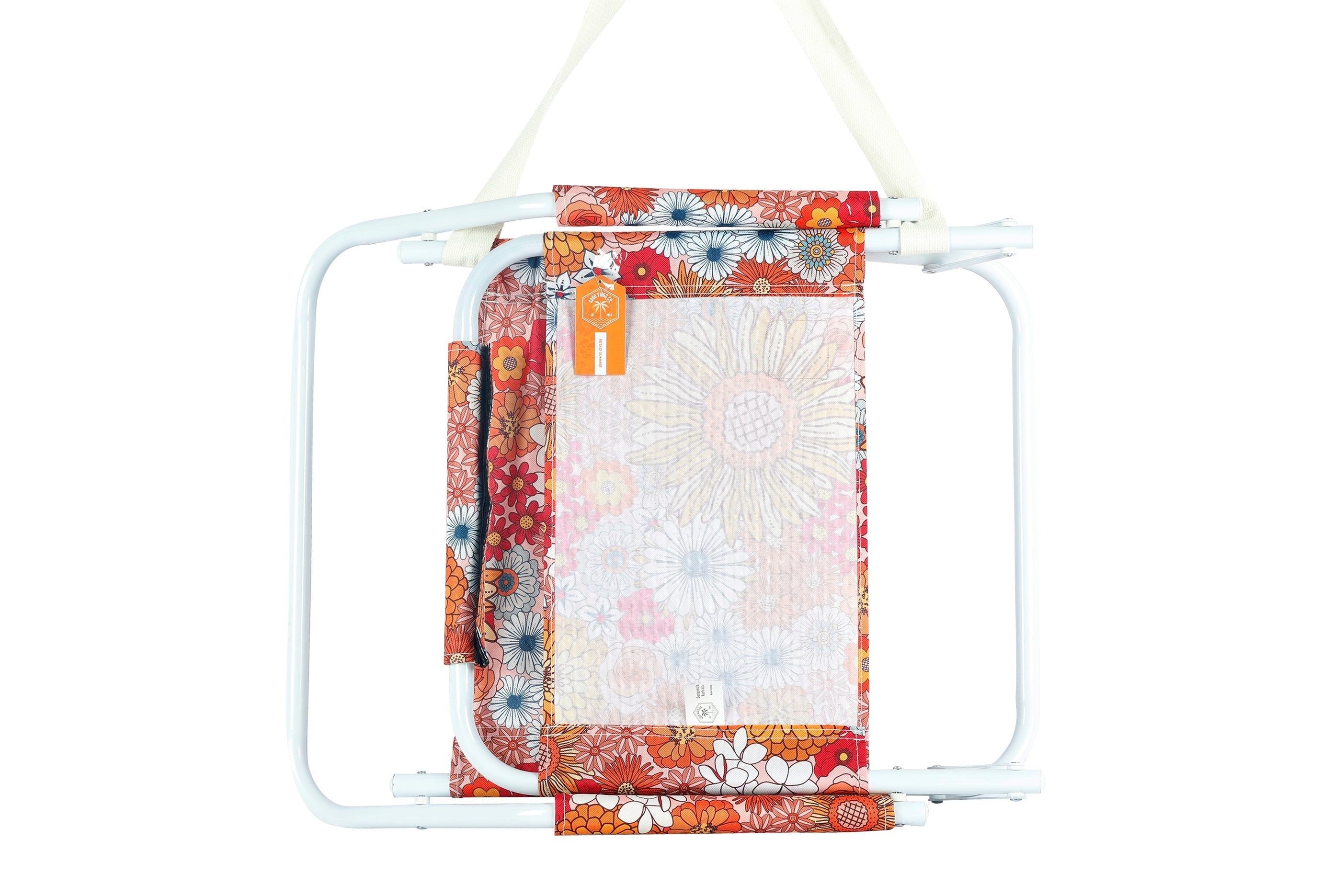 Good Vibes™ Foldable Beach Chair with Carry Strap, Lightweight & Portable, High Back, Powder Coated Frame - Retro Summer