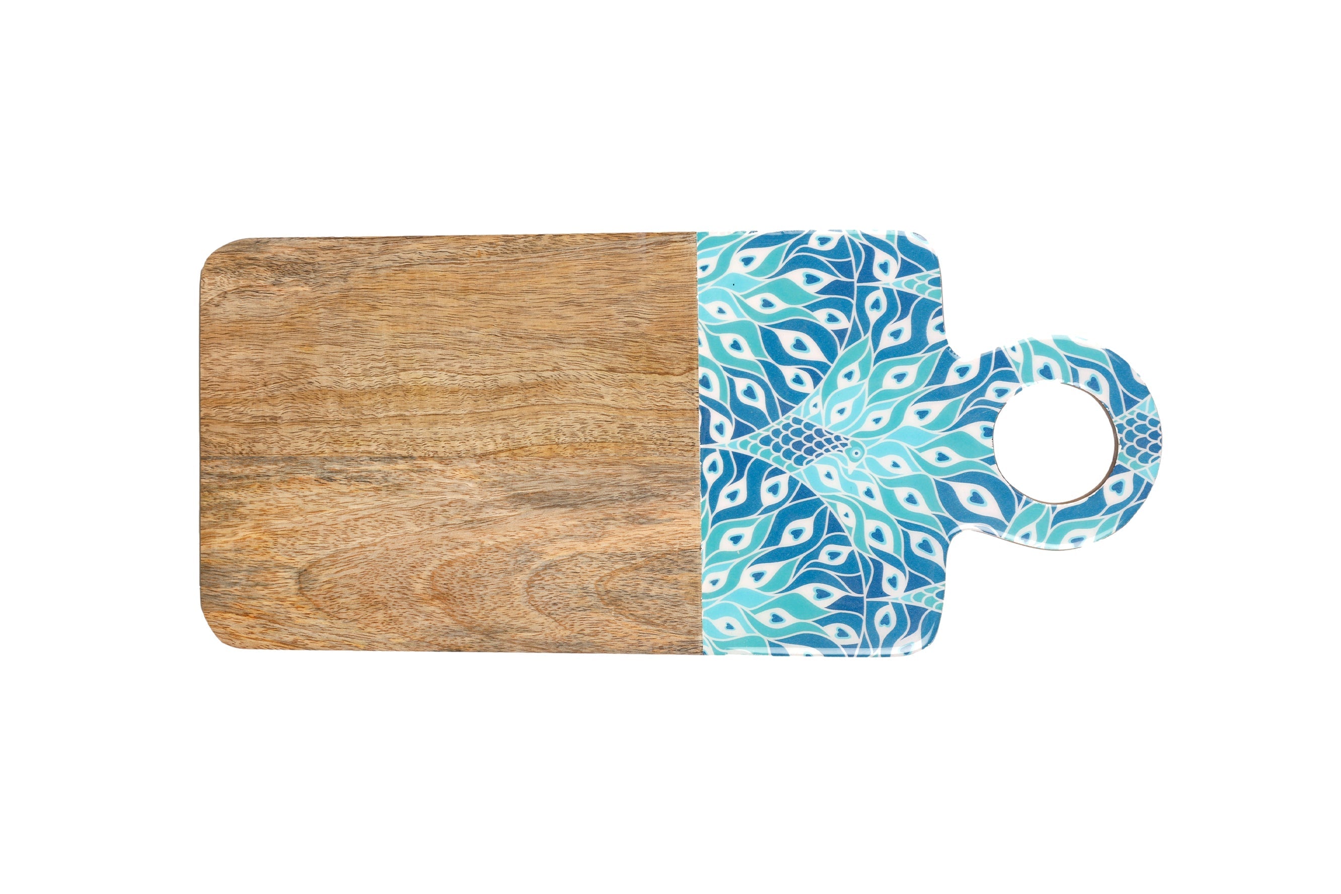 Good Vibes™ Mango Wood & Enamel Serving Board 46cm - Peacock Paradise