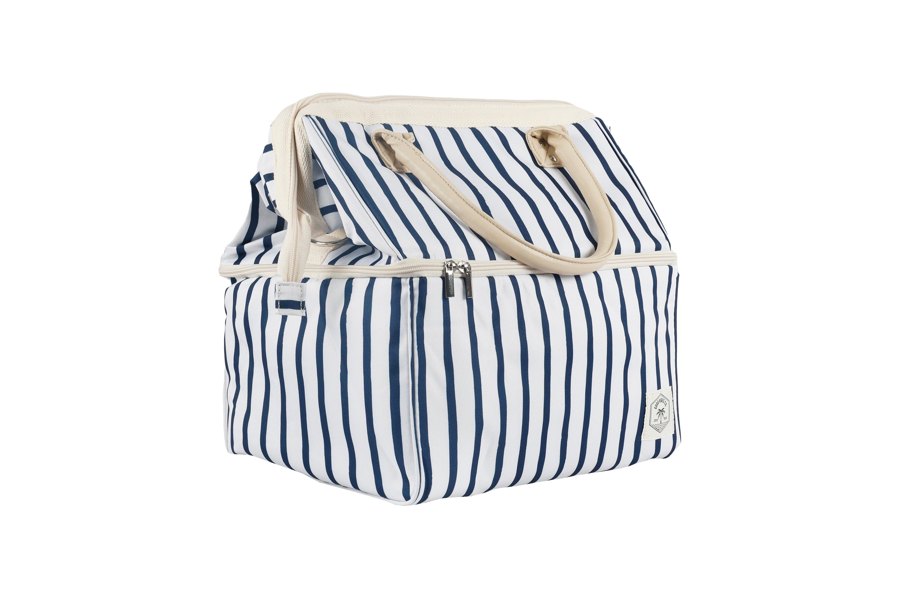 Good Vibes™ Premium Insulated Picnic Cooler Bag, Carry Handles, 2 Separate Compartments, Holds 24+ Cans - Mediterranean