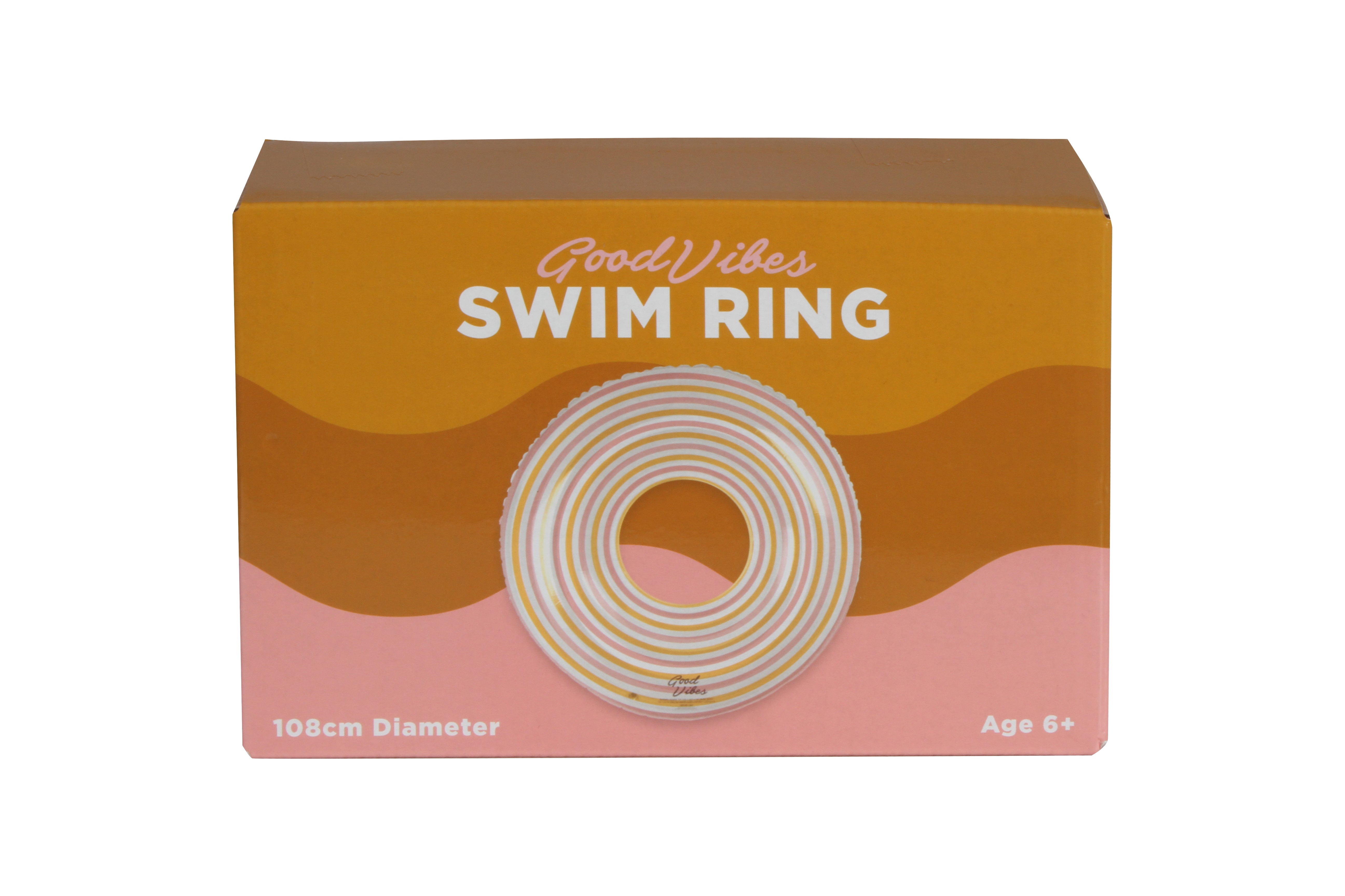 Get ready for some serious fun in the sun with our extra large inflatable Swim Ring. Perfect for the beach or pool parties alike, this heavy duty PVC swim ring is sure to make a splash. With its generous size and in season colours, it also makes an awesome gift for those seeking Good Vibes this summer.