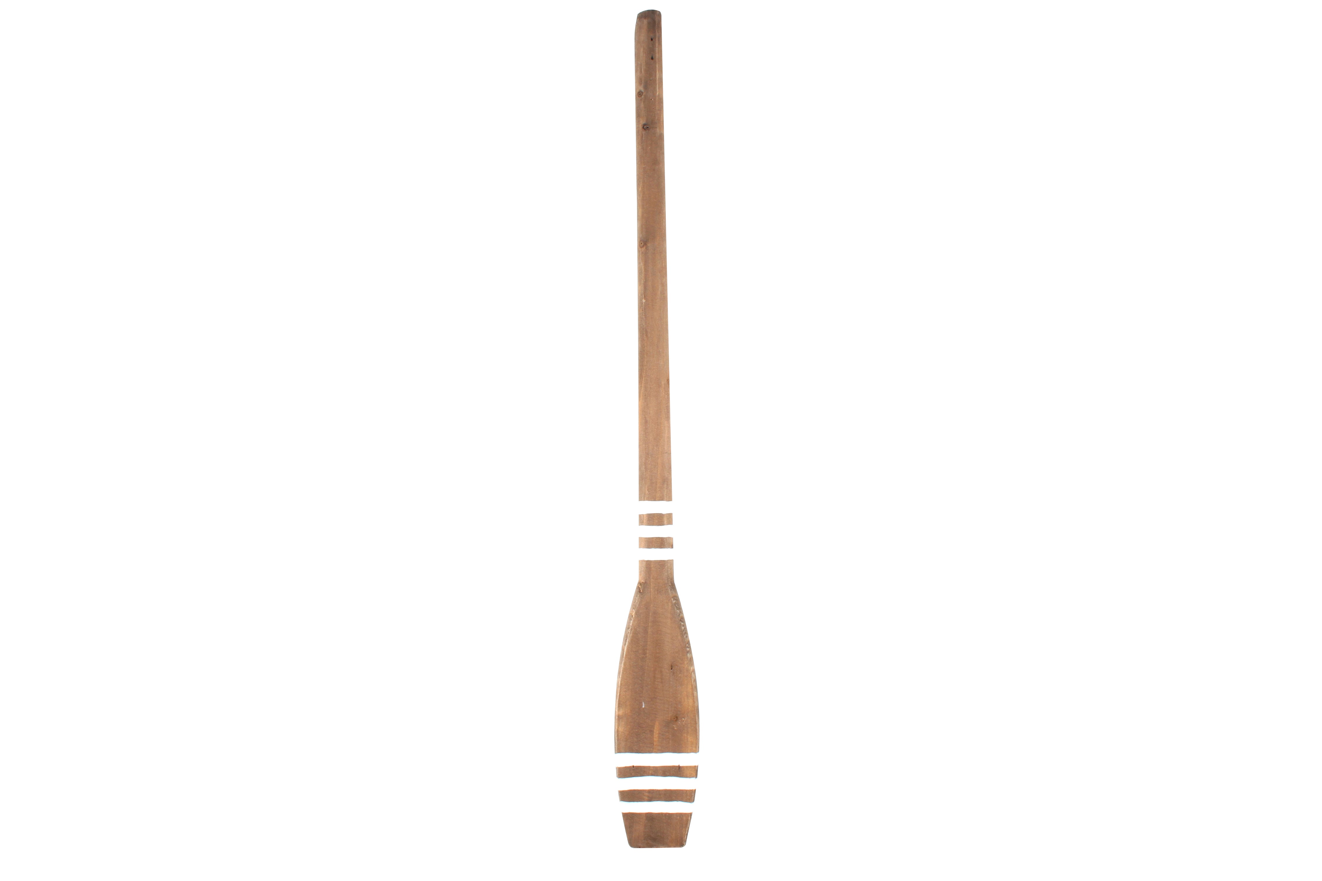 Perfect for your home by the sea! This oar has rustic natural wood with white striping giving a relaxed holiday feel.