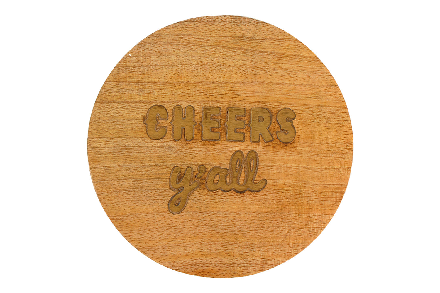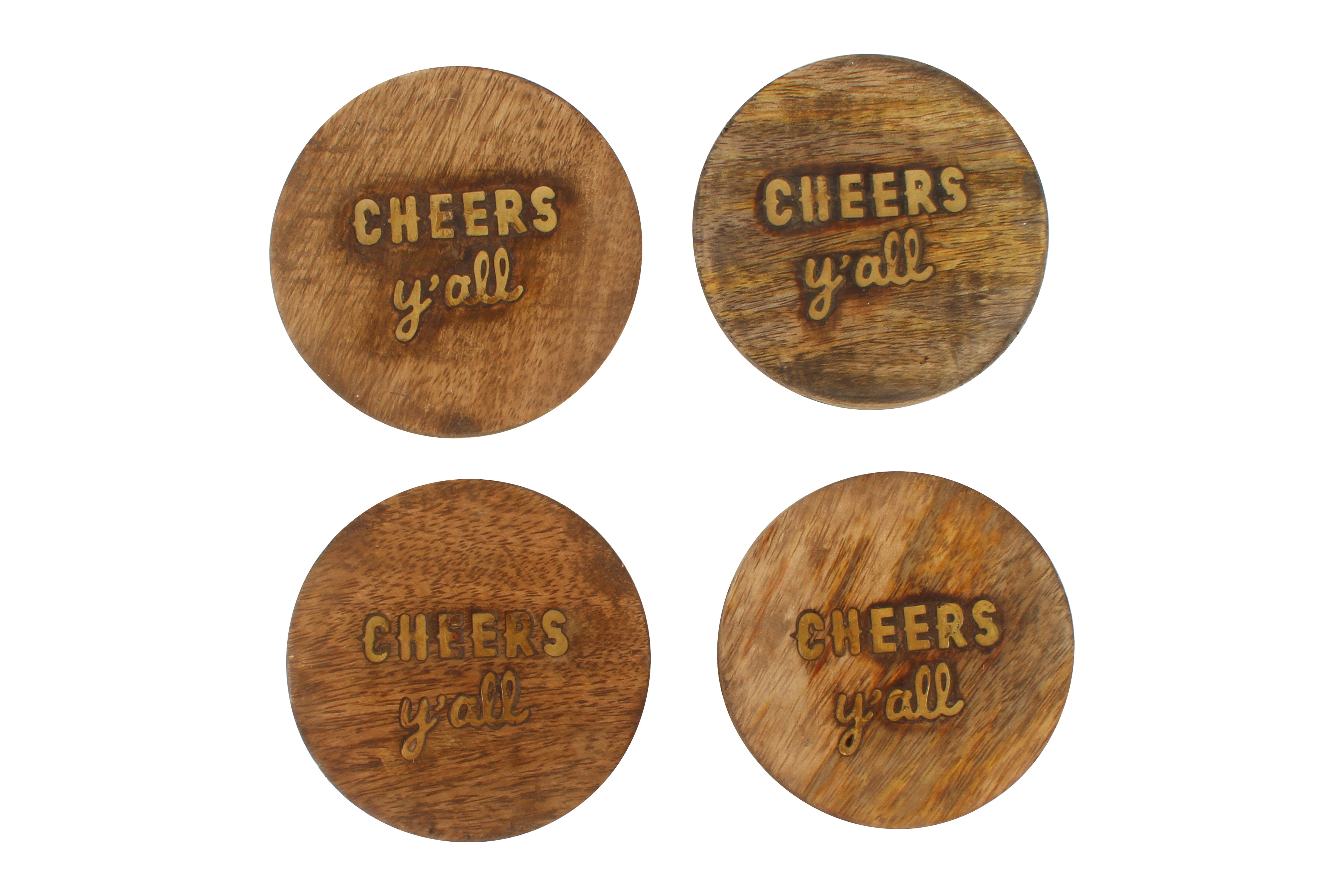 Made from high-quality mango wood, these coasters feature a charming gold printed design that celebrates good times and good company. The natural grain of the wood creates a unique and rustic look, while the protective coating ensures durability and easy cleaning. Perfect for both hot and cold beverages, these coasters are a stylish way to keep your tables free from drink rings and spills.
