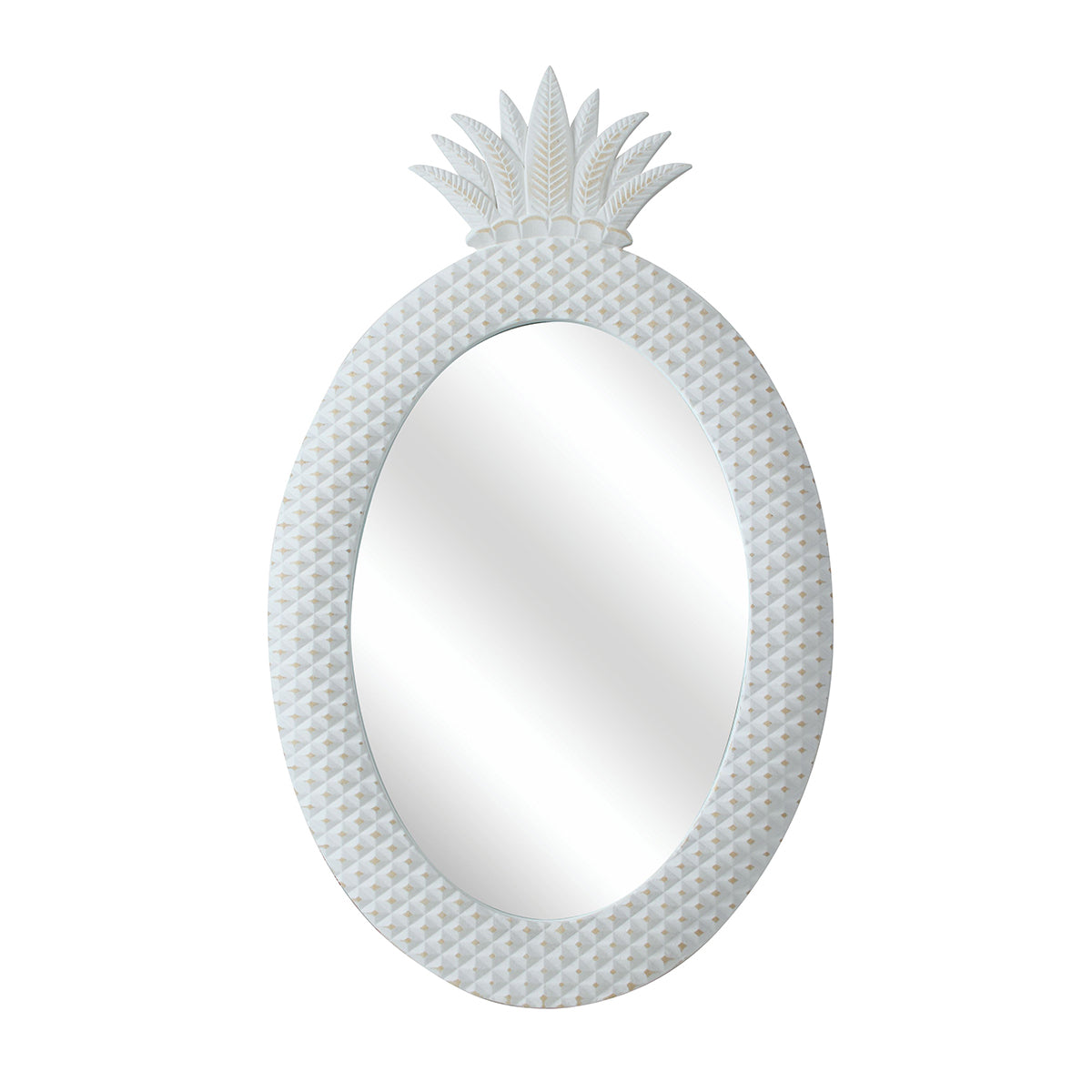 Introducing our Pineapple Wall Mirror: a cute and charming addition to your home decor. With its classic white MDF frame and tropical vibe, this 50 x 30 x 2cm mirror exudes style and uniqueness. Hang it in any room for a touch of playfulness and elegance. Perfect for those seeking a fresh and vibrant atmosphere.