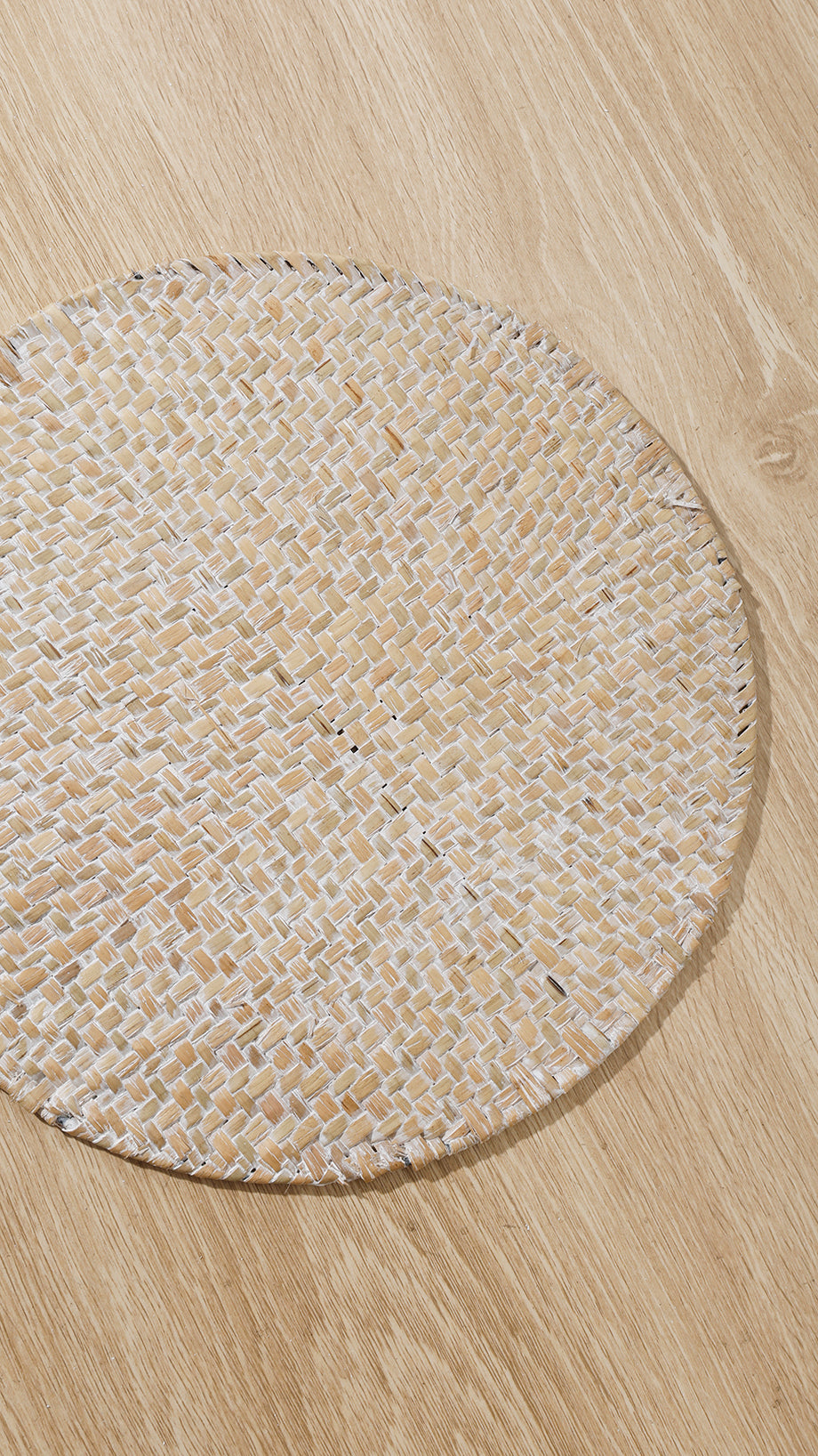 Crafted from natural straw, this round placemat combines functionality with sustainability. Its eco-friendly design not only protects your table from spills and stains but also adds a touch of rustic charm to any setting.