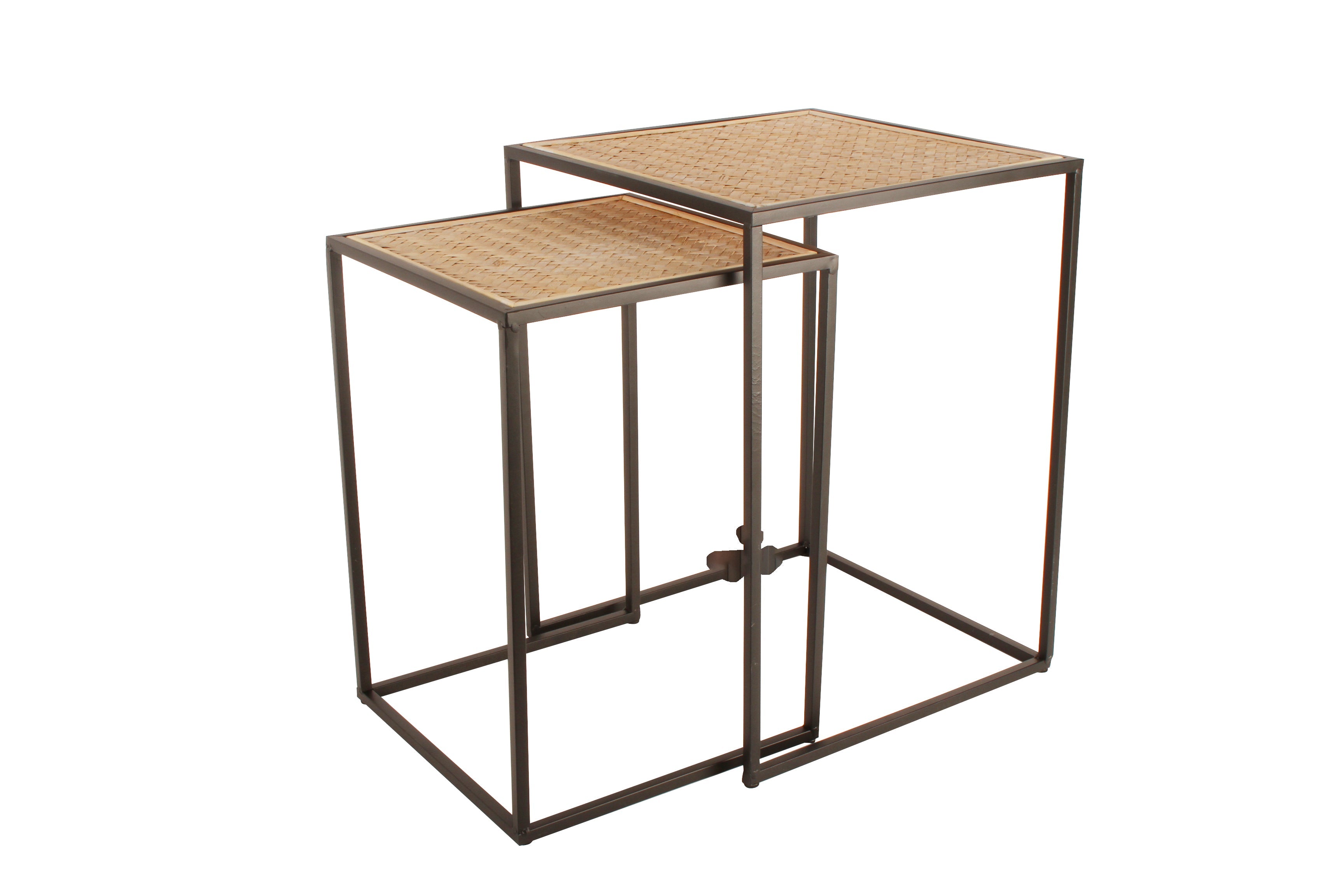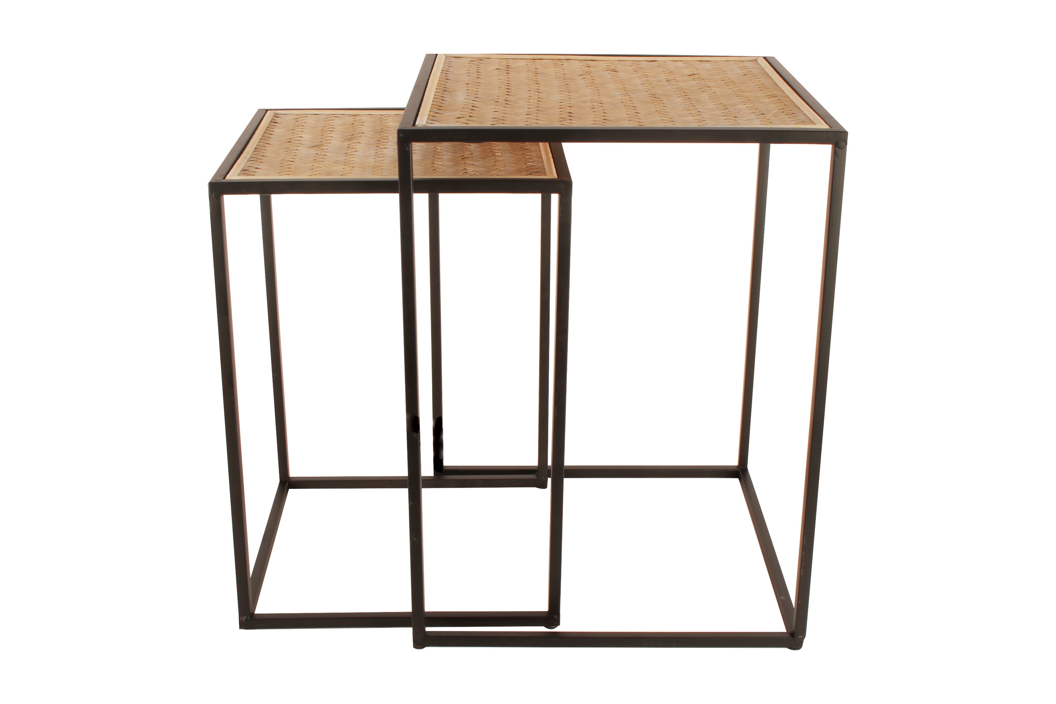 Introducing the Hendrix Side Tables - a set of 2 square top, nesting side tables that effortlessly combine style and functionality. With its matte black metal legs and rattan top, these tables add a touch of modern elegance to any space. Measuring 57 x 42 x 42cm, they provide ample surface area for your favorite books, drinks, or decor. Versatile and chic, the Hendrix Side Tables are a must-have addition to your home.