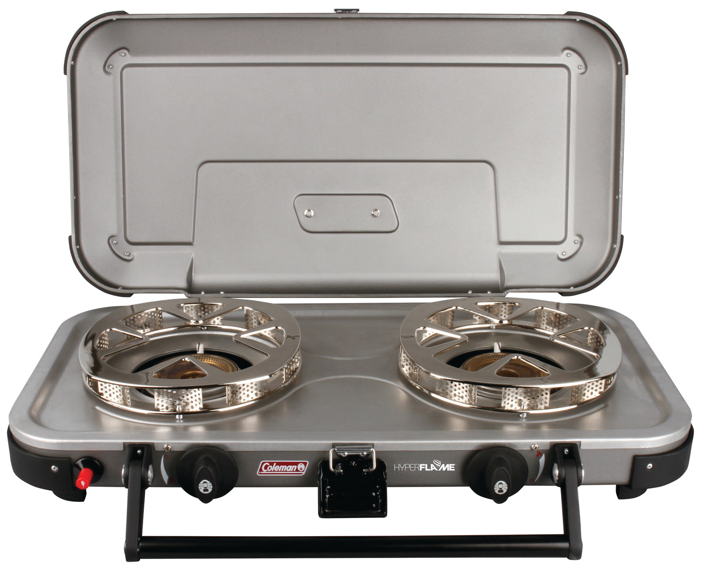 Ideal for fast boiling and use with larger pots. Boil water twice as fast as standard burners. 2 independently adjustable burners for easy flame control. Windblock™ technology blocks wind from any direction without extinguishing the flame. Heavy duty locking latch and shock absorbing bumpers for easy carrying and safe transportation. Instastart™ push button for quick and easy matchless ignition. PerfectFlow™ technology provides consistent performance, even in extreme conditions.