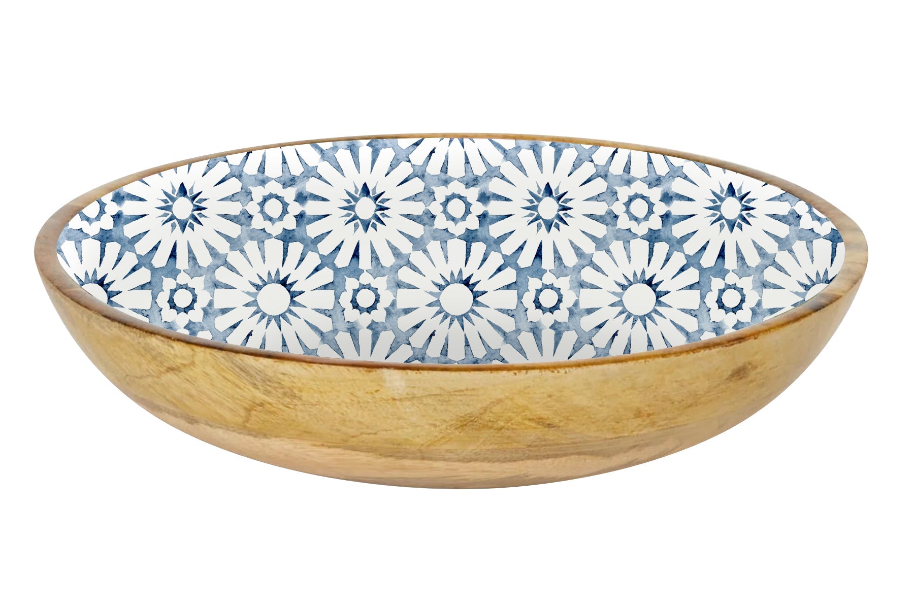 Elevate your dining experience with the Indigo Waters Round Salad Bowl. Crafted from durable mango wood and coated with a sleek enamel finish, this 32cm bowl is not only easy to clean but also perfect for indoor and outdoor use. Gather your loved ones around and create precious family memories while enjoying fresh salads in style.