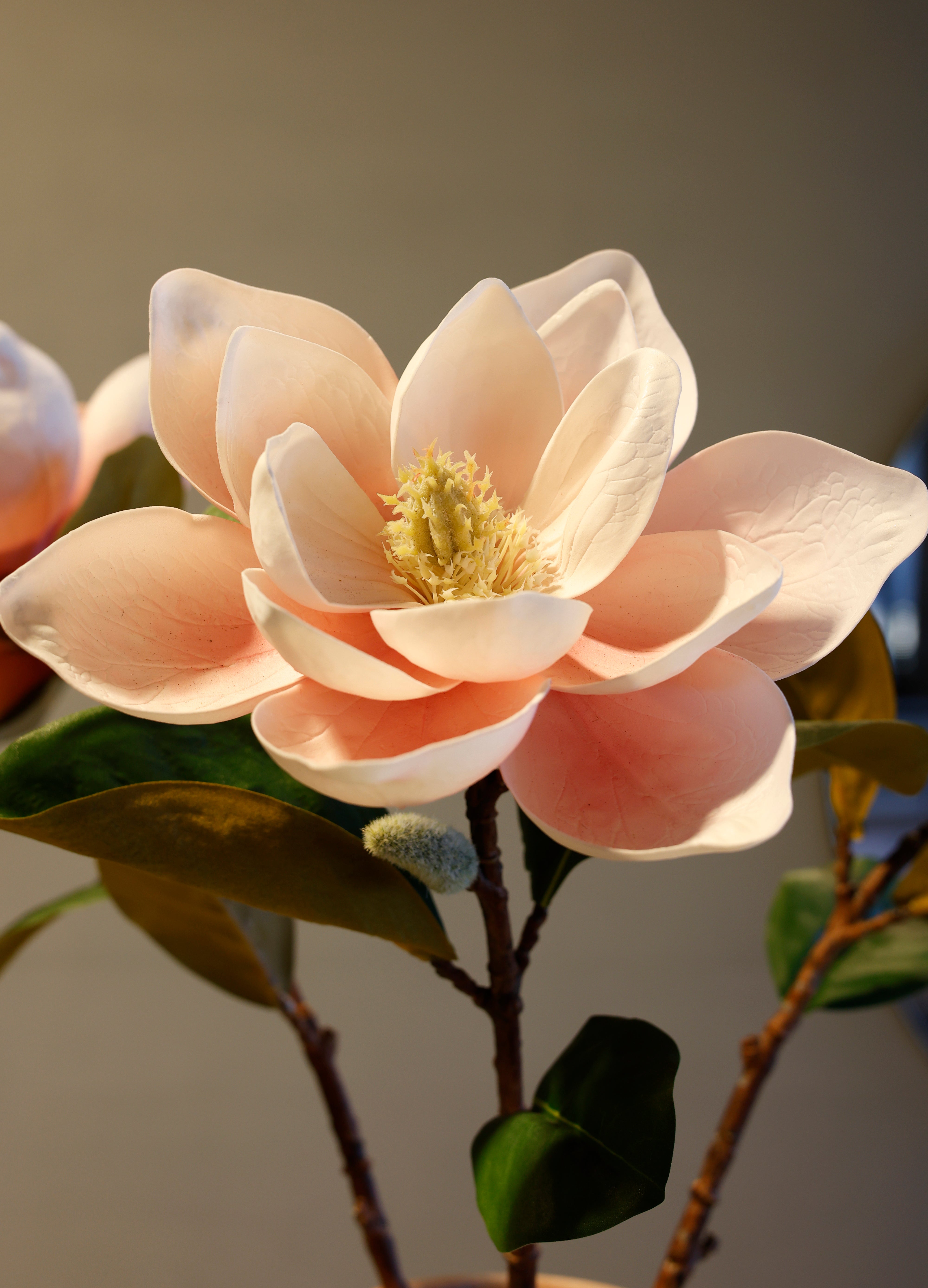 Transform your space with this elegant Magnolia stem. At 70cm long, this artificial flower stem brings the beauty of nature indoors without the fuss of real plants.