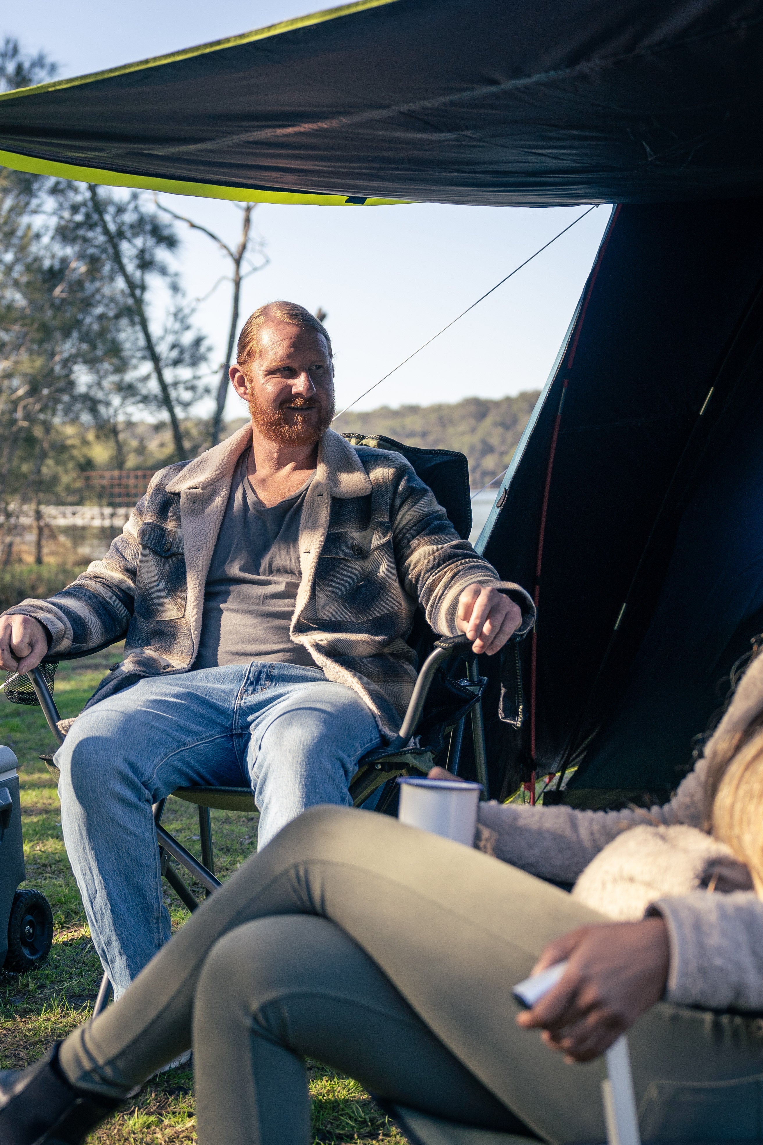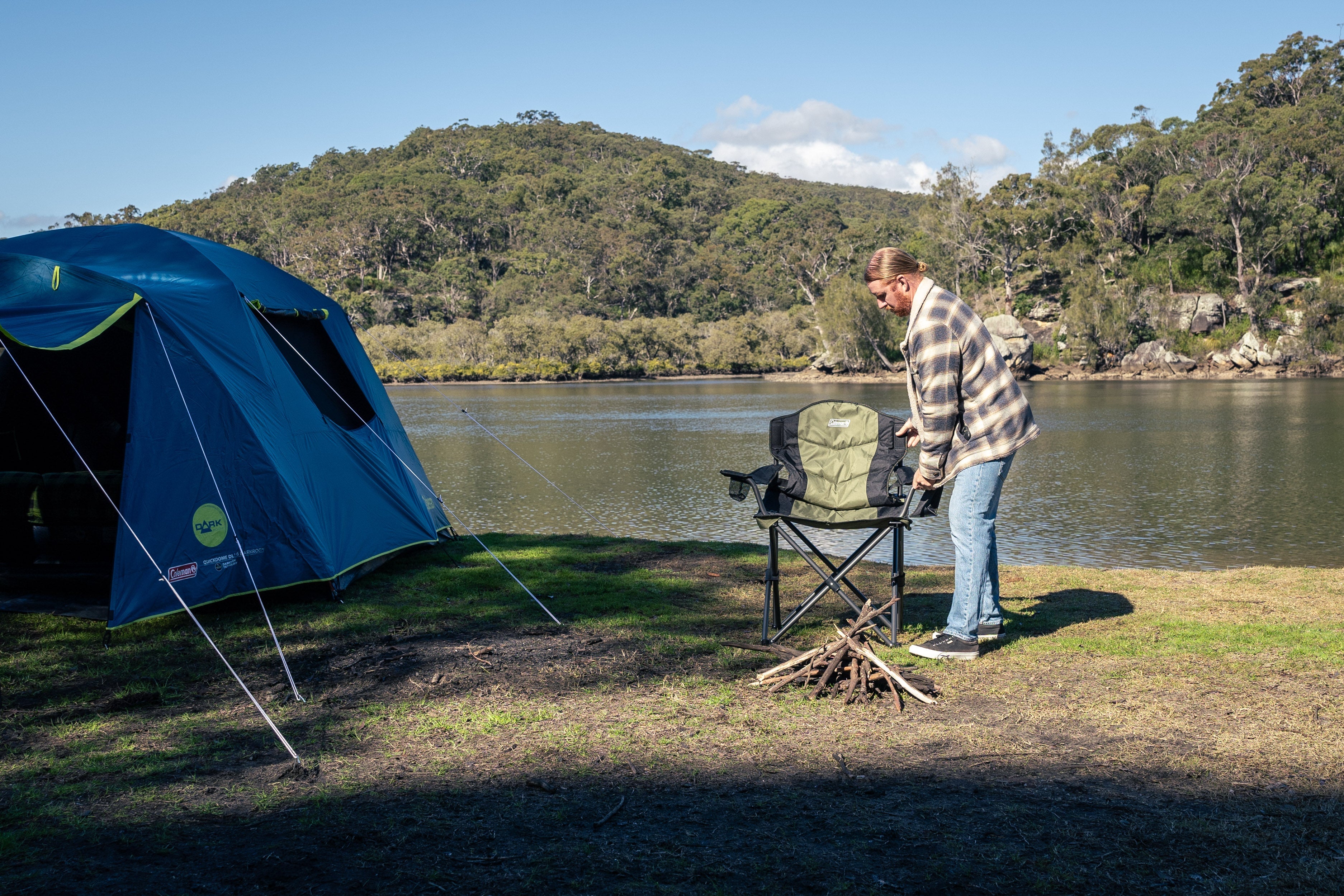 The Coleman Swagger Quad Fold Chair is a perfect heavy duty chair for your next adventure giving you ultimate comfort! Designed with durability and comfort in mind. It can support up to 250 Kgs, making it suitable for a wide range of individuals. The quad fold design ensures easy setup and compact storage, while the padded seat and backrest provide maximum comfort. The chair also features a convenient built-in PVC pouch to protect you phone and a side pocket for storing essentials. Whether you're camping, on the sporting field or enjoying a day at the beach, the Coleman Swagger Quad Fold Chair will be your go-to spot to unwind and embrace the great outdoors!