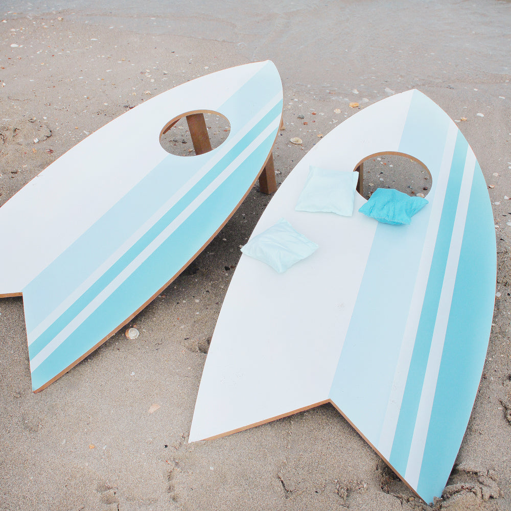 Get the party started with the Surfboard Bean Bag Toss Game! This must-have beach game is fun for the whole family, creating memories that will last a lifetime. With 2 boards and bean bags, it's perfect for 2 players. Whether it's a gift or just a way to have a whole lot of fun, this game is sure to make a splash at your next gathering.